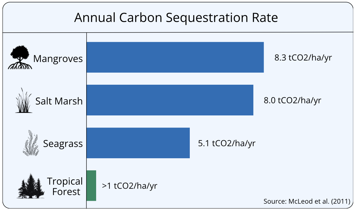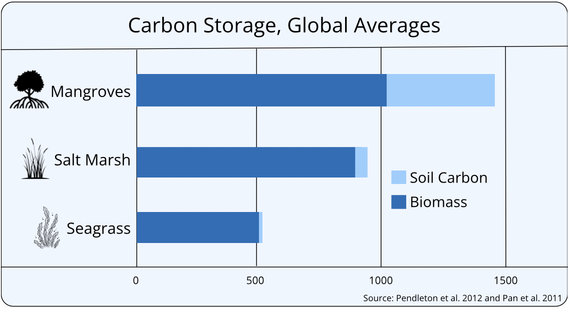 1Sources: E. Pidgeon. 2009. Carbon sequestration by coastal marine habitats: important missing sinks.
